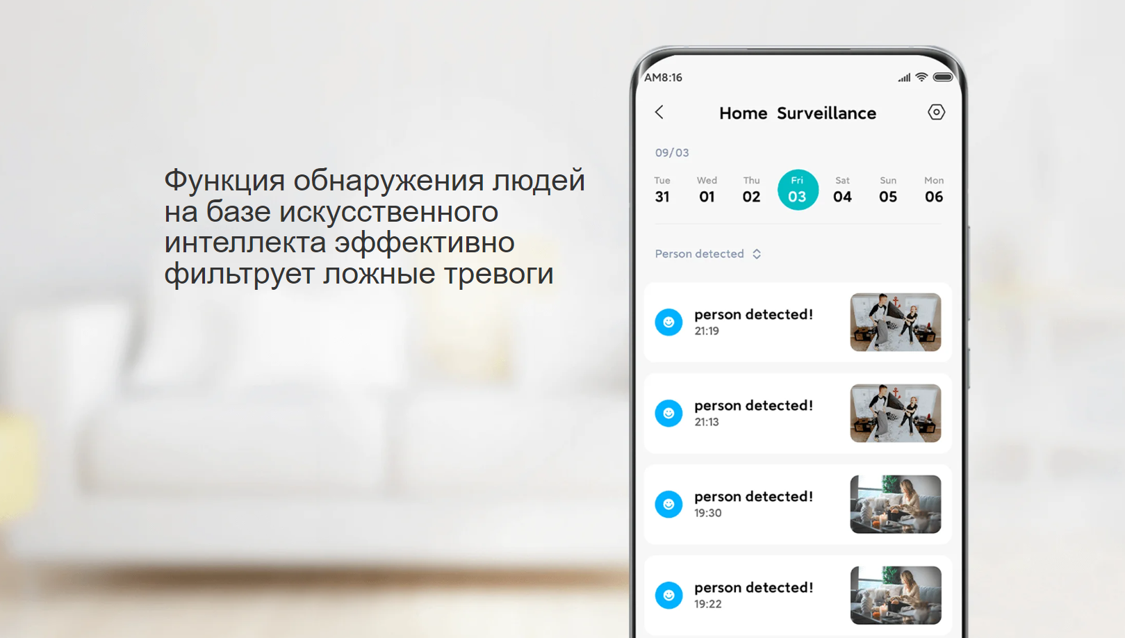 Функция обнаружения людей на базе искусственного интеллекта эффективно фильтрует ложные тревоги